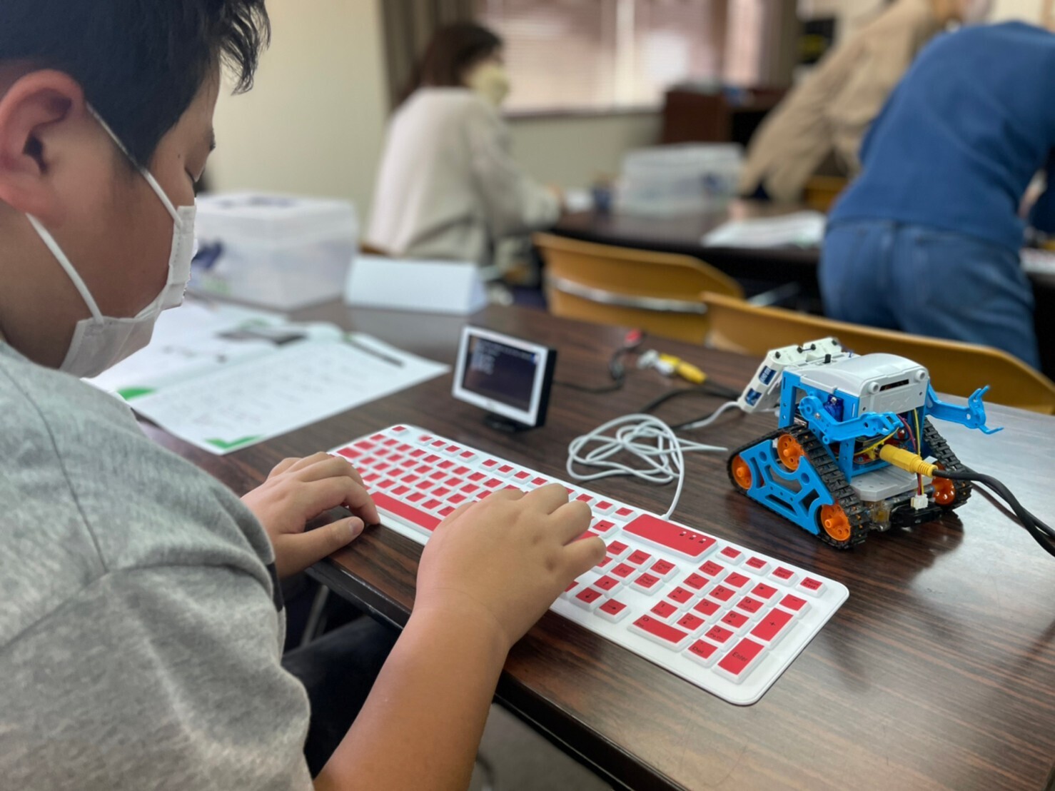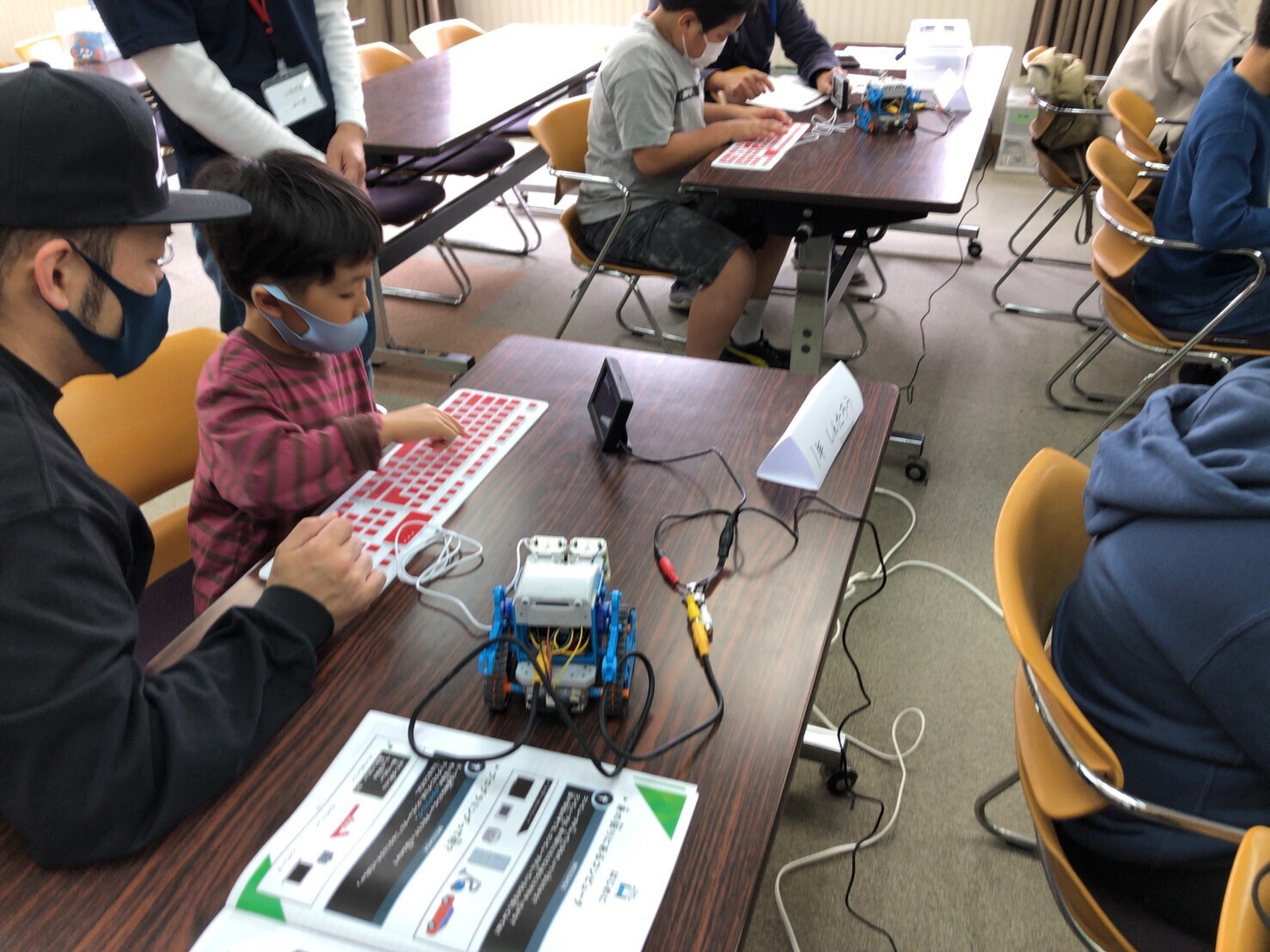 小学校ではタブレットを使ったプログラミングをやっているようですが、実際に動くモノにプログラミングするというところに子供は興味津々でした!
